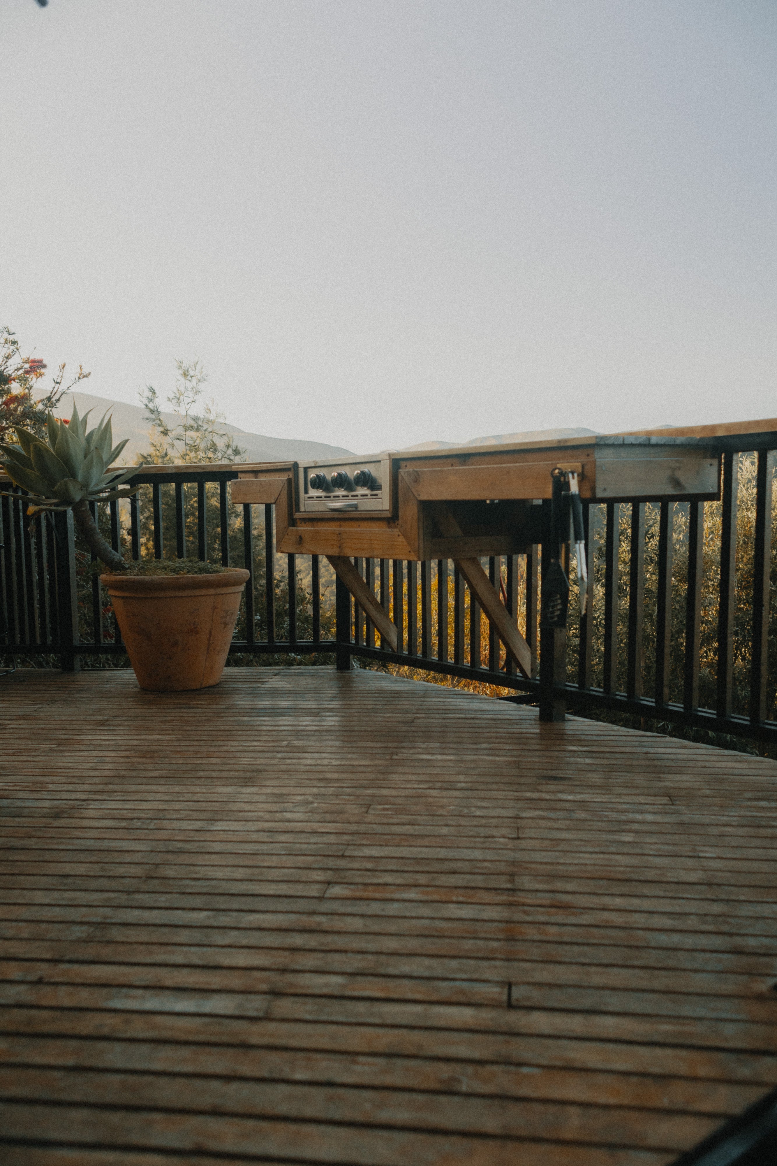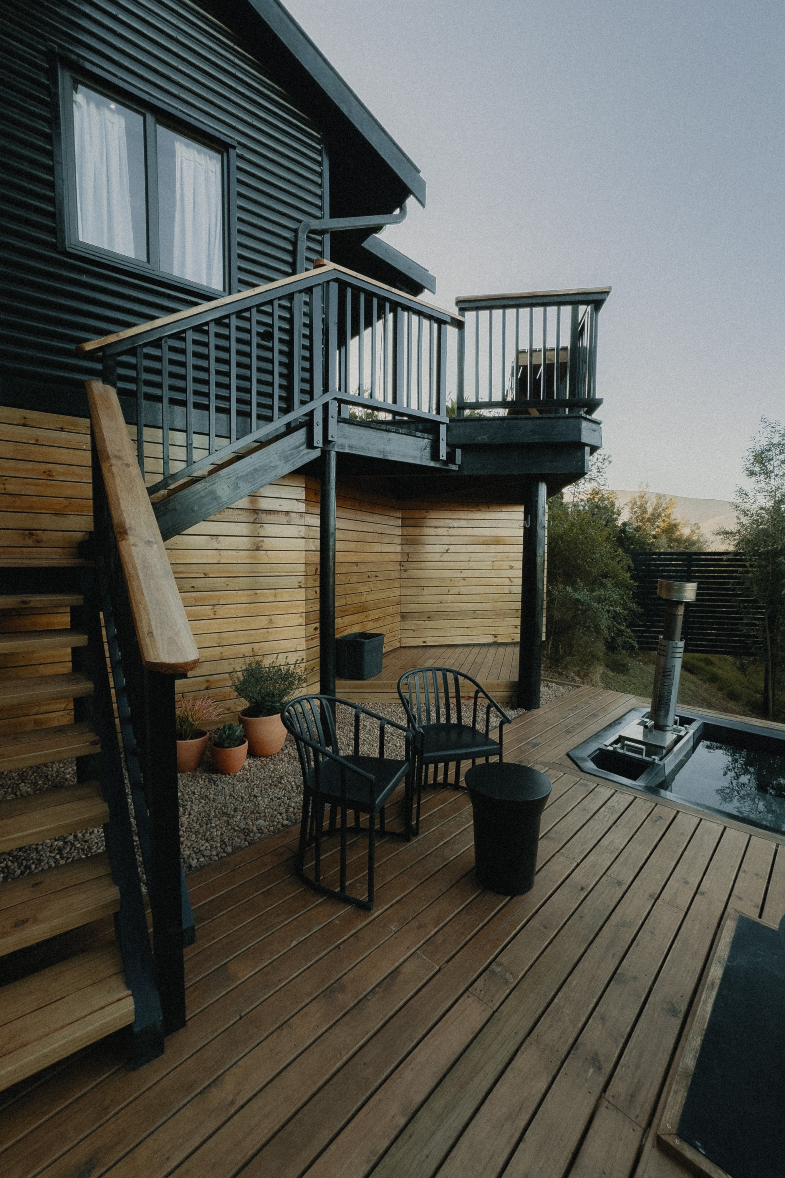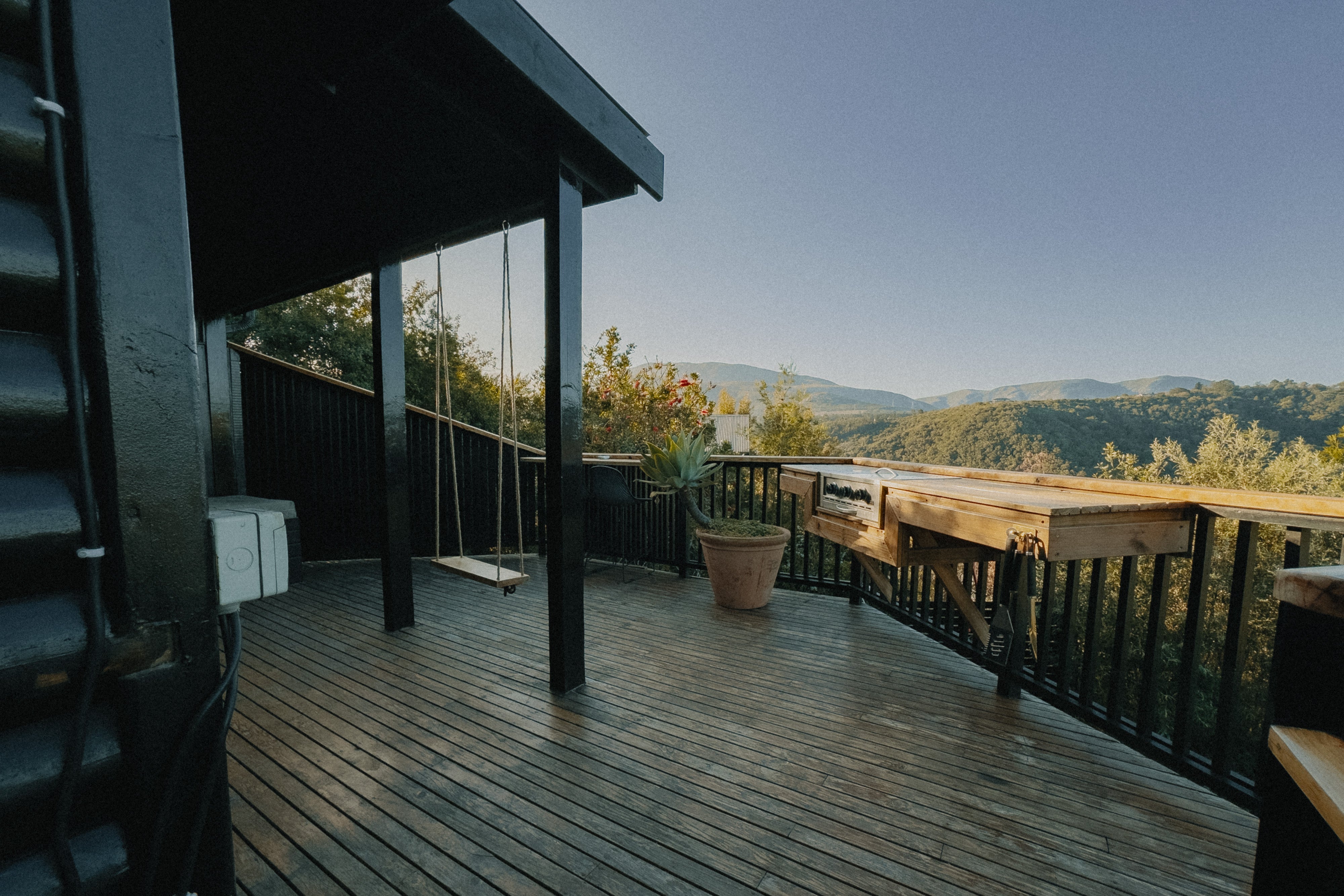 - Large deck with wood-fired hot tub and wood braai