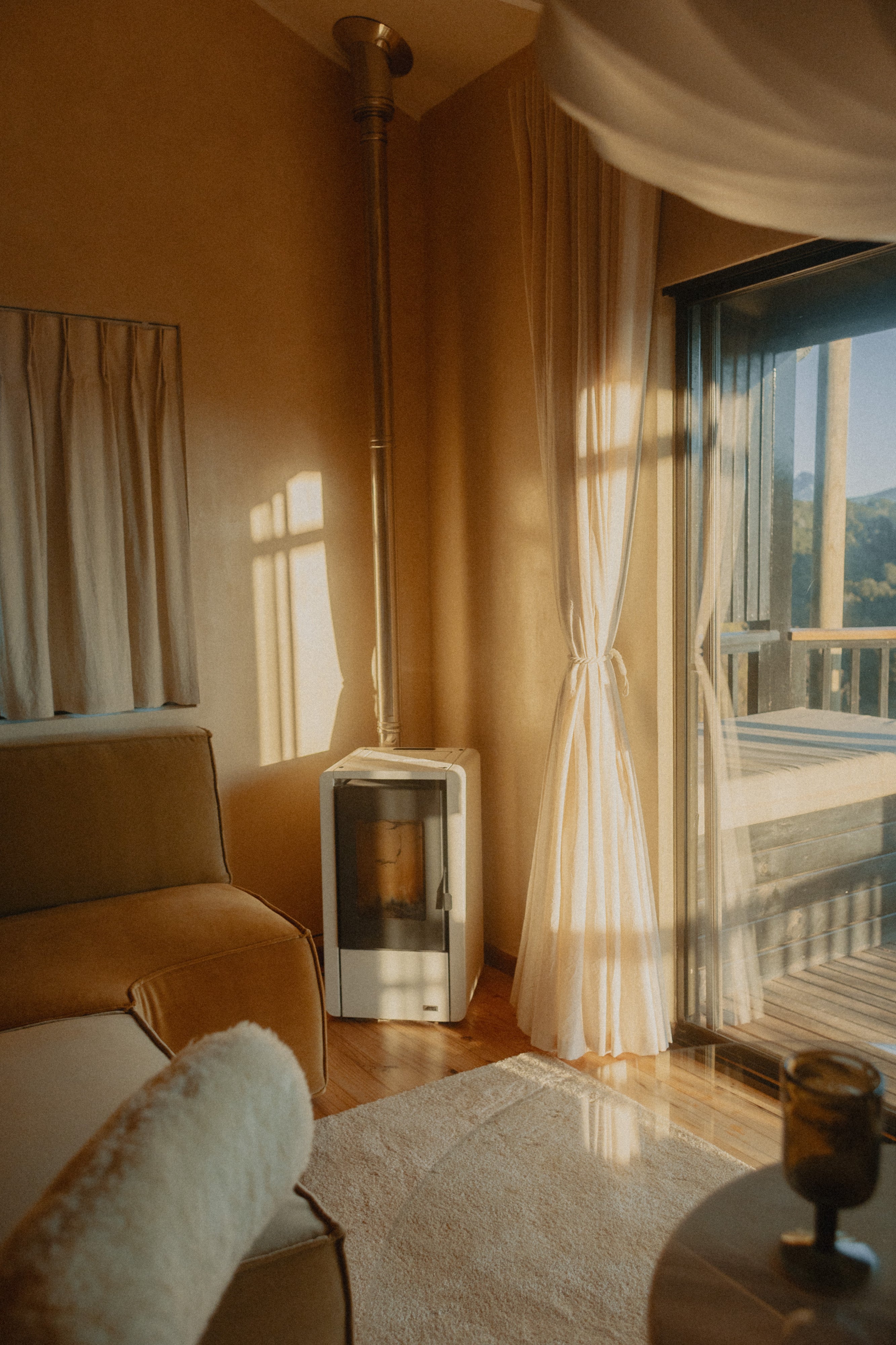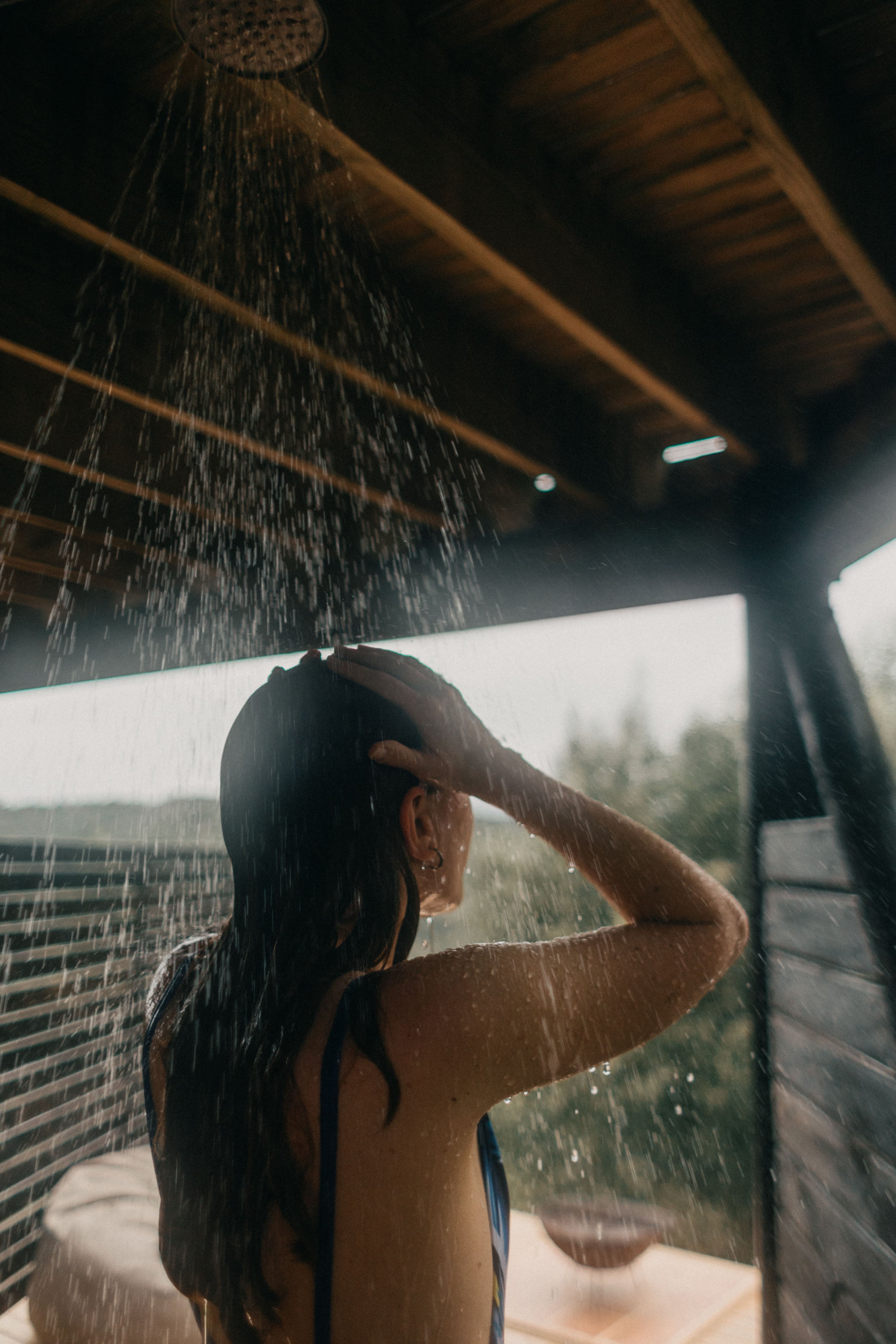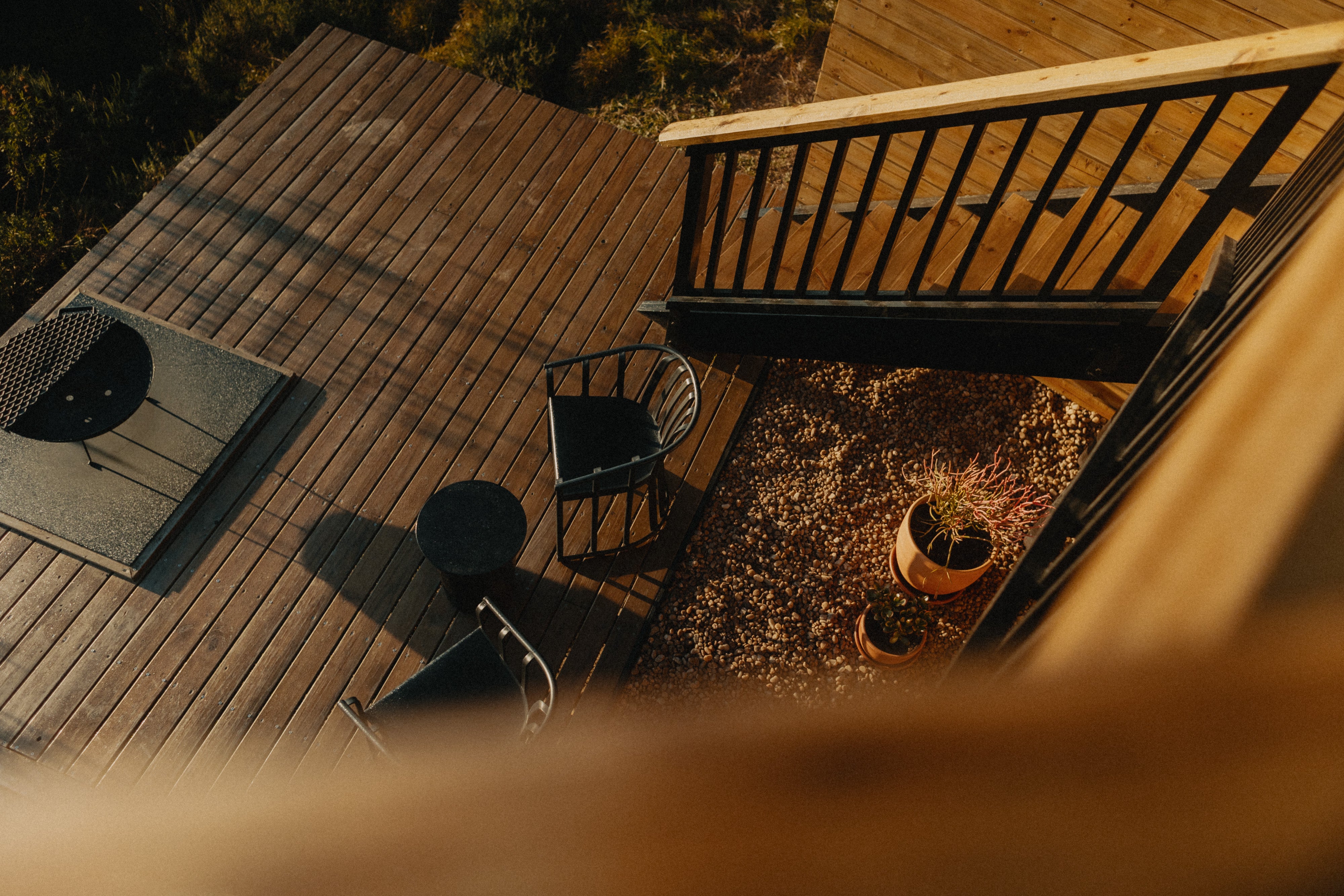- Large deck with wood-fired hot tub and wood braai